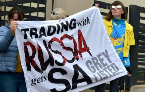 The inside note set the cadence; the streets supplied the optics. During the summit, South African media captured reports and images of protestors holding up Ukrainian flags and placards, an unusual sight in Johannesburg.