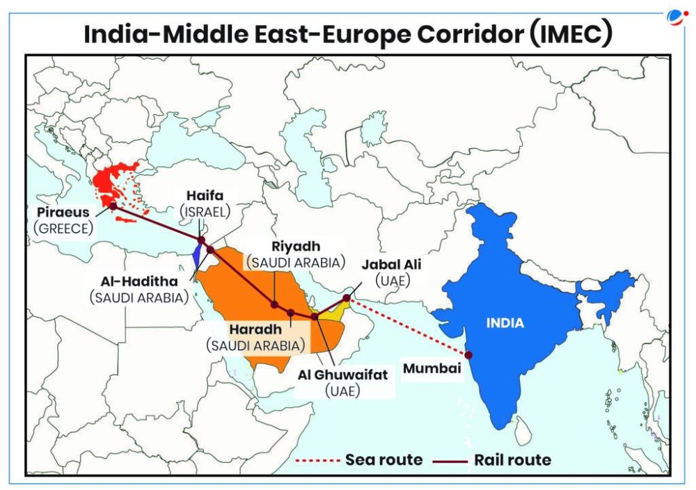 The Abraham Accords for Israel ideally would have resulted in normalization and Israel proceeding as the primary hub of goods from India, oil and natural gas exports from the Mid-East region, destined for Europe as part of the IMEC project. But the Saudis are not on board with normalization unless Israel ‘gives up’ Gaza, so IMEC will not work unless Netanyahu adheres to the 20 point plan. Both Israel and Saudi Arabia want IMEC, but only the Saudis are geographically contingent. Israel’s role certainly comports with India’s relationship: it is desirable for India yet is not fundamental if it comes down to bypassing obstacles obstructing Indian goods from reaching Europe.
