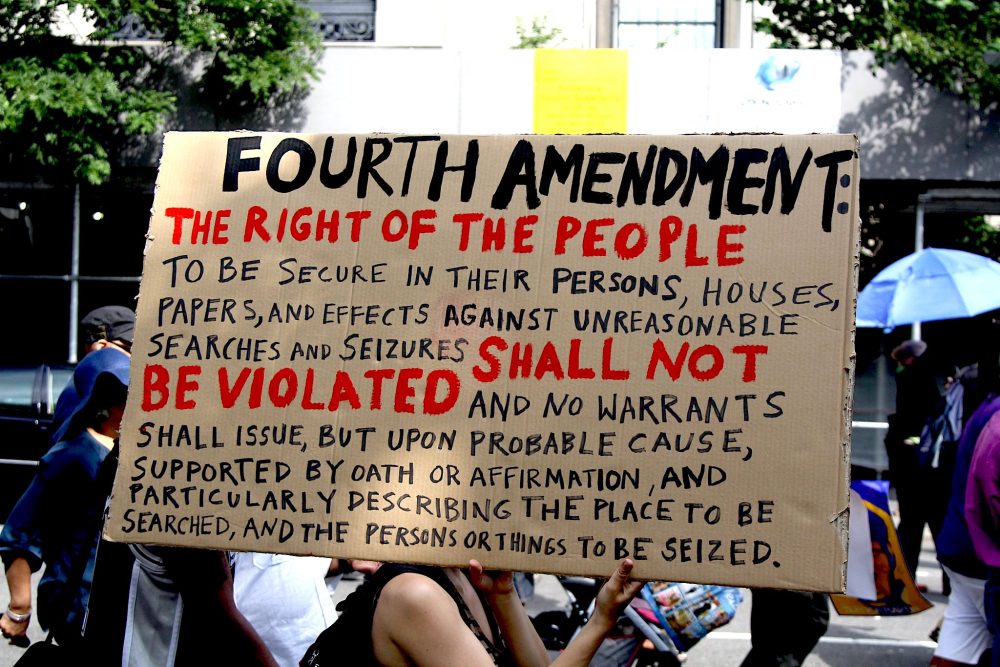Fourth Amendment sign at a demonstration in New York City against the police racial profiling practice known as Stop and Frisk, June 2012. (Terence McCormack, Flickr, CC BY-NC-ND 2.0)