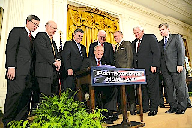 George W. Bush is joined by House and Senate members as he signs ‘Patriot Improvement and Reauthorization Act of 2005’. (White House photo by Eric Draper)